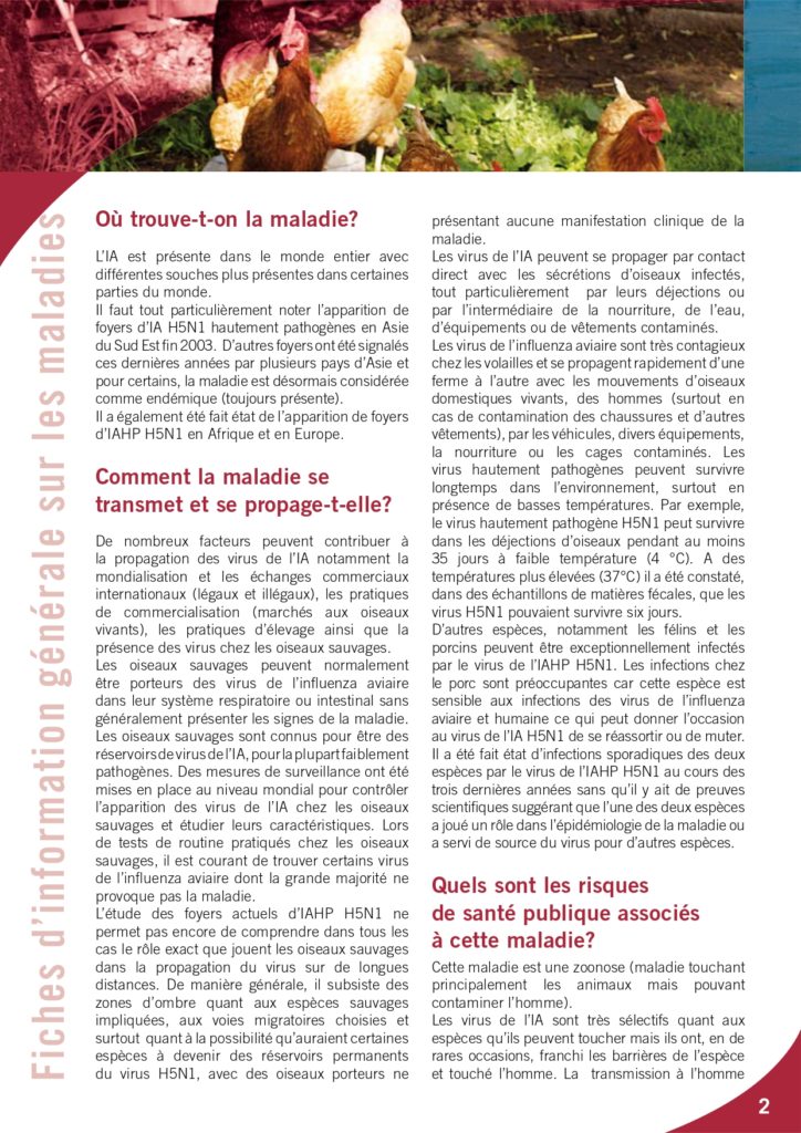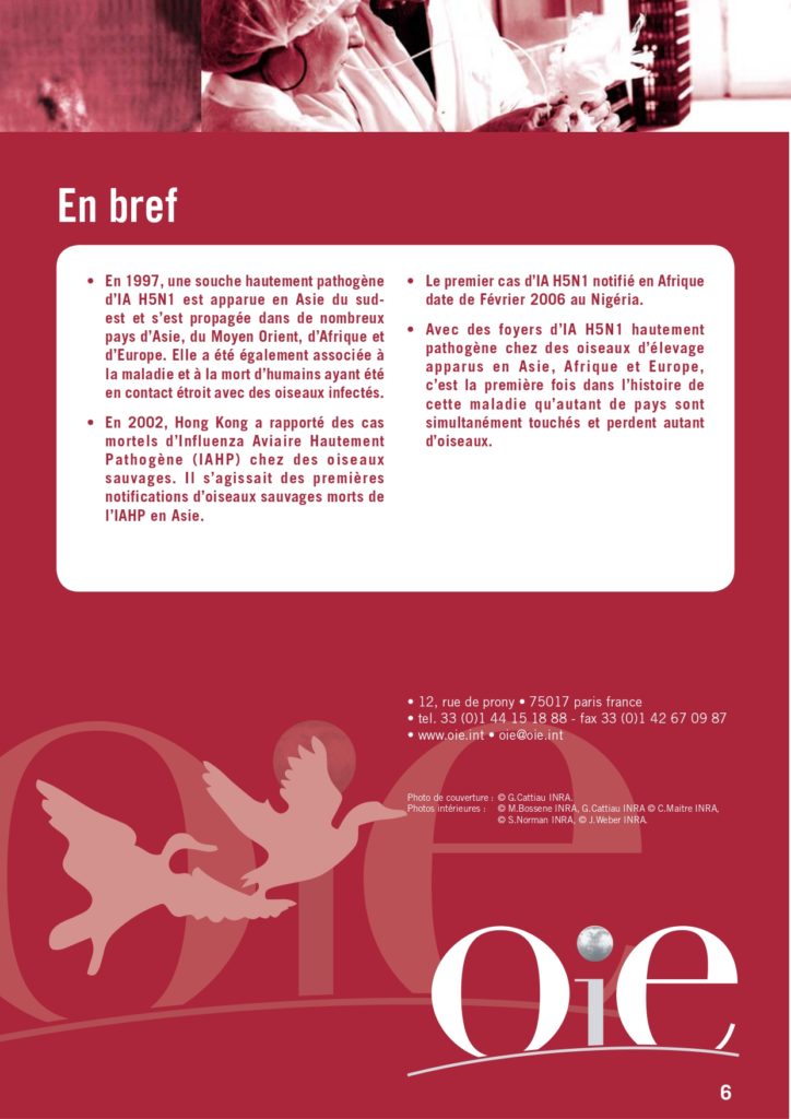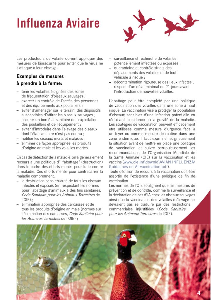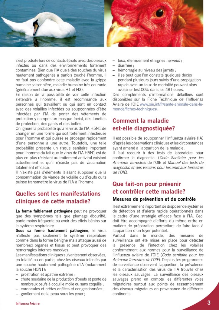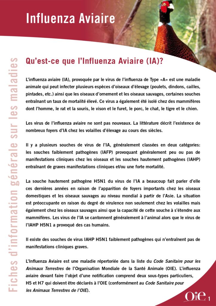 Ci dessous la fiche du site OIE sur la grippe aviaire = Influenza Aviaire