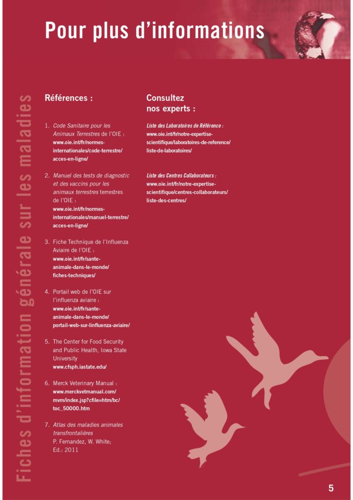 Vous trouverez également des renseignements précieux sur cette maladie et bien d’autres maladies animales sur le site de l’OIE.